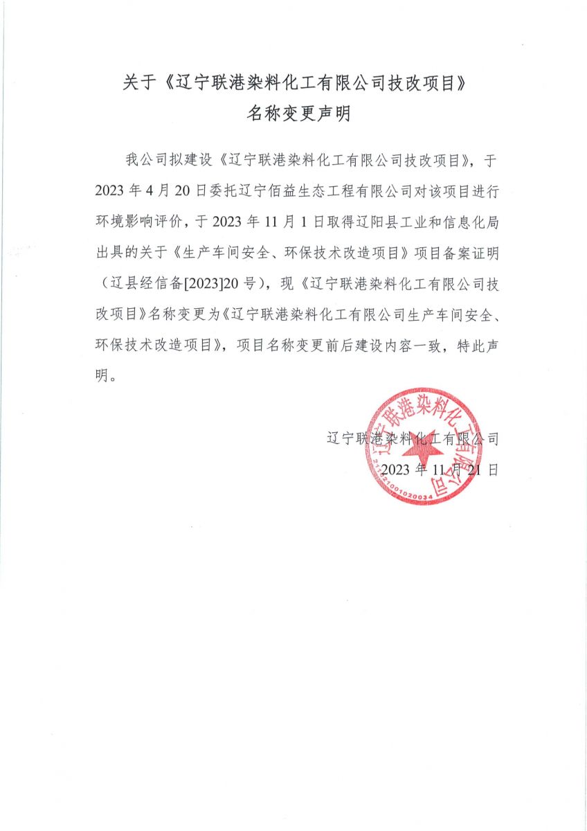附件:關(guān)于《遼寧聯(lián)港染料化工有限公司技改項(xiàng)目》名稱變更聲明.pdf